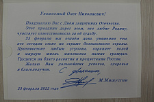 В своём поздравлении Михаил Владимирович отметил, что этот праздник дорог всем, кто любит Родину и чувствует ответственность за её судьбу.