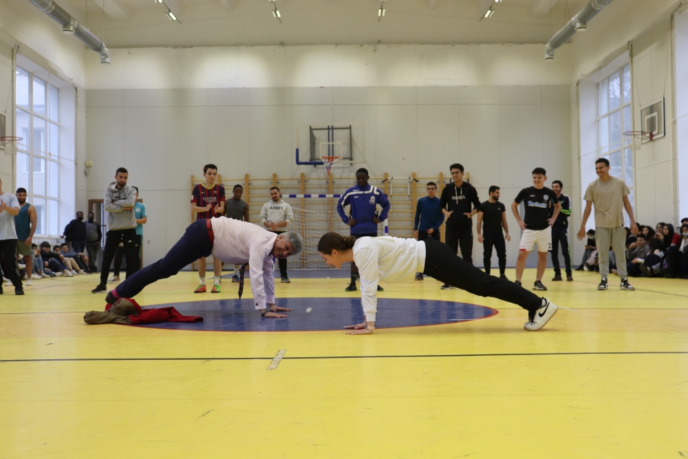 Участники спортивных состязаний продемонстрировали командную работу и отличную физическую подготовку: стояли в планке, отжимались, соревновались в прыжках в длину и в скорости, участвовали в различных конкурсах. С небольшим преимуществом победу над командой «Амор» одержали представители команды «Салями». Спортсмены из стран Латинской Америки, Африки, Азии получили сладкие призы и подарили зрителям невероятный заряд энергии.