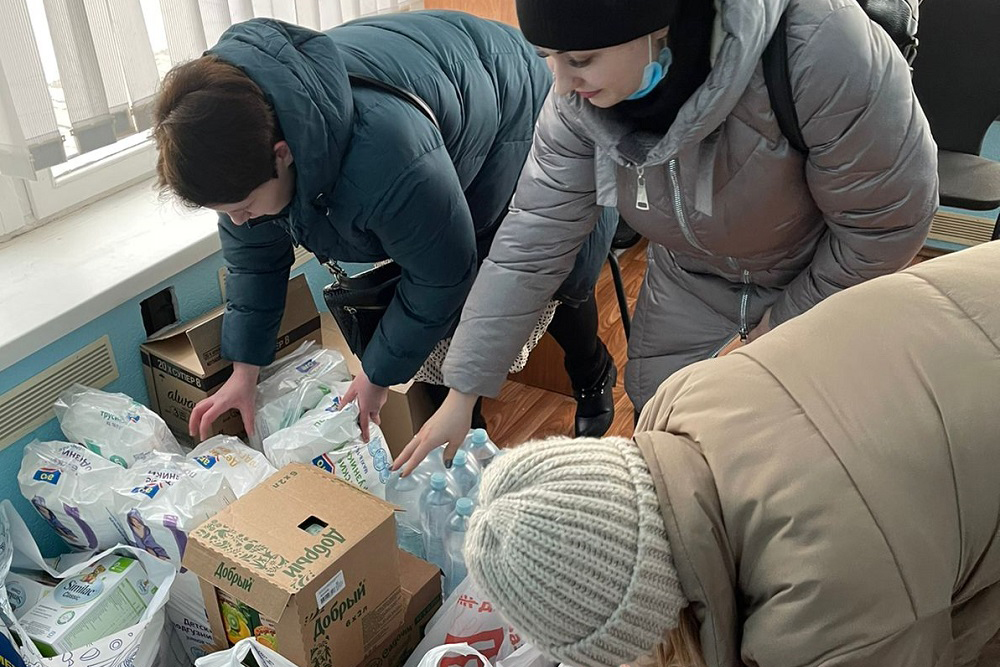 Добровольцы, среди которых студенты и преподаватели Белгородского госуниверситета, покупают, собирают и отвозят гуманитарную помощь для людей, прибывающих в Белгородскую область из ДНР, ЛНР и Украины