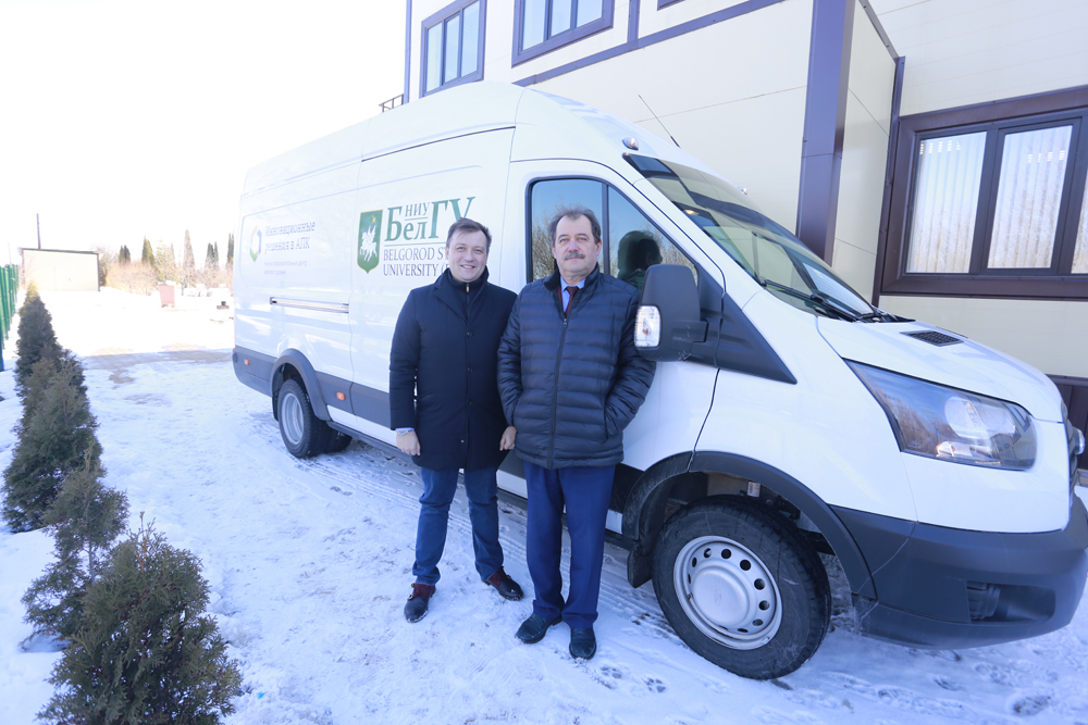 Мобильная лаборатория для проведения генетических исследований и ветеринарной службы в НИУ «БелГУ» выглядит как обычный микроавтобус, однако внутри расположено высокотехнологичное оборудование, которое позволяет проводить сложные манипуляции и исследования в области генетики и ветеринарии. Мобильность необходима для того, чтобы учёные могли выезжать на фермы, а не привозить животных в лабораторию, что зачастую проблематично.
