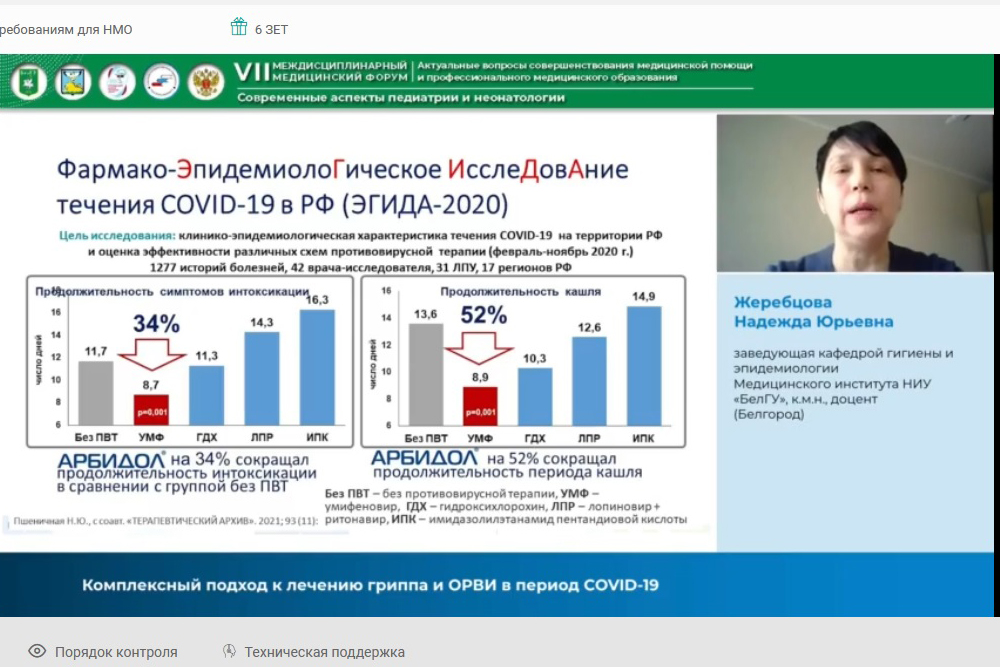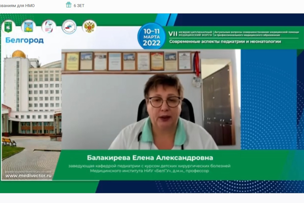 Заведующая кафедрой педиатрии с курсом детских хирургических болезней Медицинского института НИУ «БелГУ», д.м.н., Елена Балакирева подготовила доклад о важности витамина D в практике врача-педиатра. Заведующая кафедрой гигиены и эпидемиологии Медицинского института НИУ «БелГУ», к.м.н., Надежда Жеребцова подготовила информацию о комплексном подходе к лечению гриппа и ОРВИ в период COVID-19.