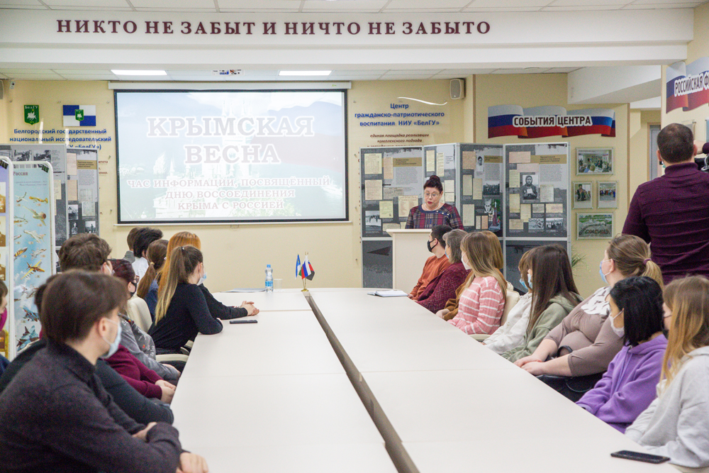 Информационный час «Крымская весна» для студентов подготовили сотрудники Научной библиотеки им. Н.Н. Страхова и Центра гражданско-патриотического воспитания НИУ «БелГУ»