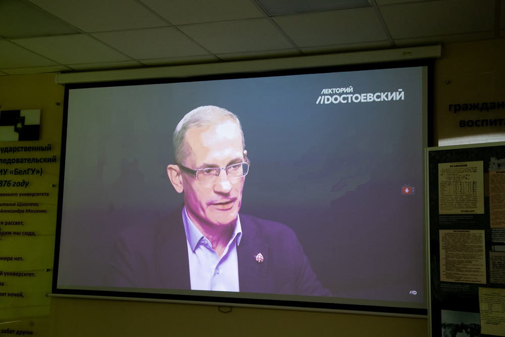 Доцент историко-филологического факультета педагогического института НИУ «БелГУ» Сергей Прокопенко поделился своим научным и гражданским видением ситуации, которая сегодня развивается на Украине и за её пределами. Сергей Николаевич подчеркнул, что европейский принцип провозглашения государственности, основываясь только лишь на существовании языка, не работает в контексте как русской, так и азиатской культуры. Историк выразил своё личное мнение об ошибках правителей Украины.
