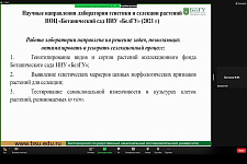 Заведующий лабораторией генетики и селекции растений НОЦ «Ботанический сад НИУ «БелГУ» Михаил Третьяков сообщил, что в лаборатории в рамках проекта НОЦ «Инновационные решения в АПК» учёные работают над созданием системы полного цикла научной методологии интродукции ценных сельскохозяйственных и декоративных культур на основе селекционно-генетических исследований. В частности, проведены масштабные исследования сирени, актинидии, жимолости и ирги. Помимо этого, к концу 2022 года планируется получить охранные документы на два новых сорта сирени в рамках проекта «Белгородская сирень». Также сотрудники лаборатории принимают участие в исследовании, выполняемом при поддержке гранта Министерства науки и высшего образования РФ, по разработке методов и подходов для очистки сточных вод при помощи растений и поиску генетически резистентных к условиям среды растений. Учёные проводят исследования в недавно созданной лаборатории физико-химических методов исследования растений.