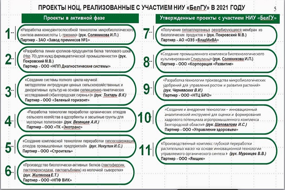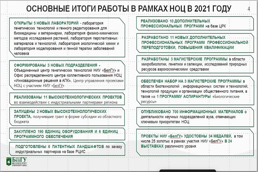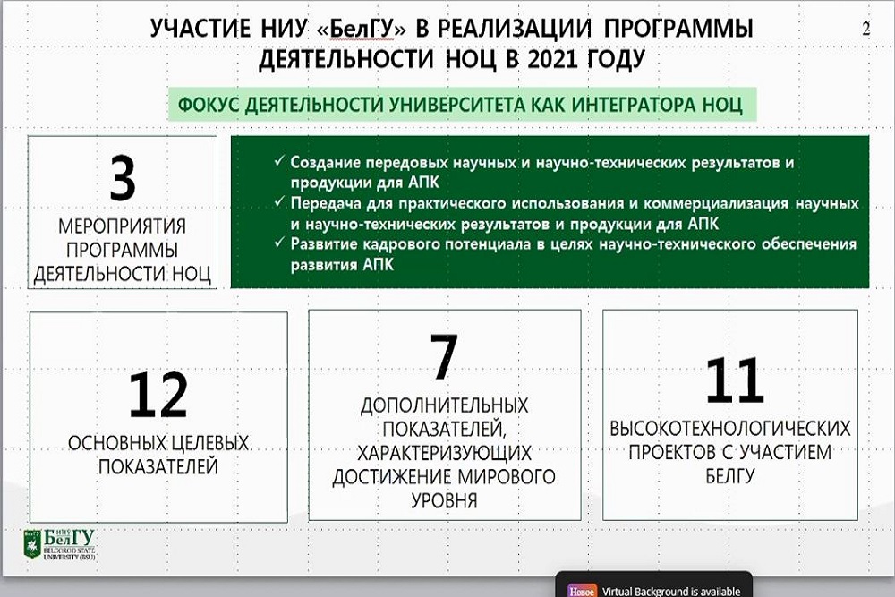 В 2021 году Белгородскому госуниверситету удалось достичь всех целей, поставленных в рамках реализации программы НОЦ мирового уровня «Инновационные решения в АПК»