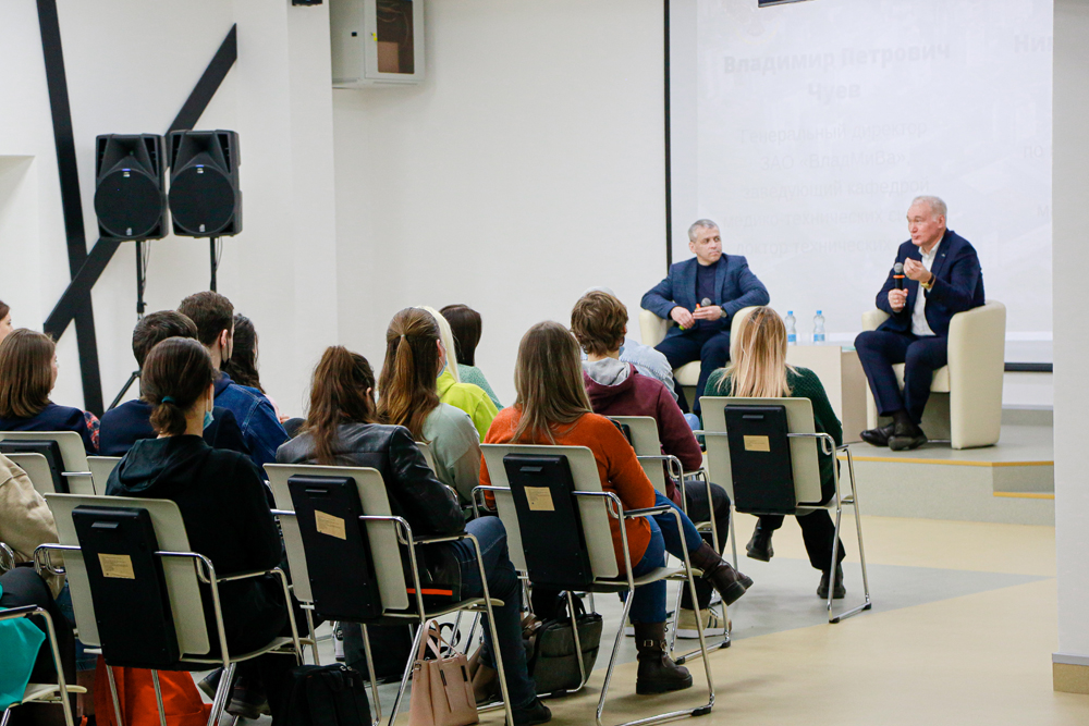 Встреча прошла в формате диалога на равных. Присутствовавшие на ней студенты педагогического и юридического институтов, института наук о Земле, института фармации, химии и биологии, института инженерных и цифровых технологий могли задавать гостю любые вопросы. Владимир Чуев рассказал молодым людям о пути в бизнес, отметив, что «ВладМиВа» началась с победы в грантовом конкурсе «У.М.Н.И.К.» Фонда содействия инновациям. Сам холдинг стал своеобразным «знаком качества» на рынке медицинского оборудования уже с момента образования в 1992 году.