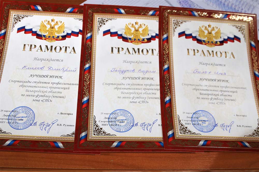 Футболистов наградили грамотами и ценными призами от Спортивного клуба НИУ «БелГУ».