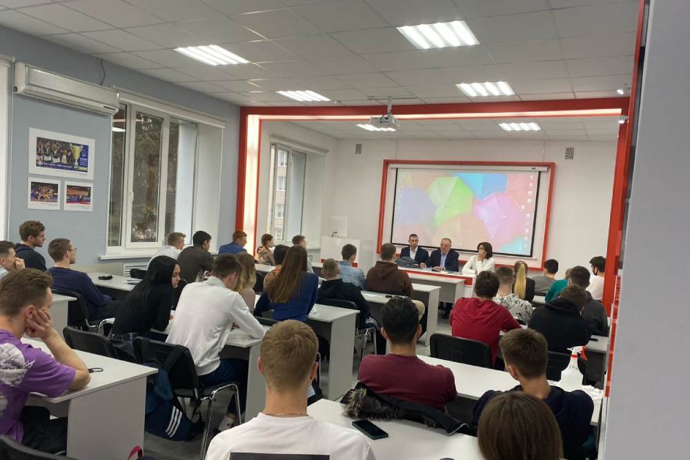 Заслуженный тренер России, вице-президент Всероссийской федерации волейбола, кандидат педагогических наук, президент и главный тренер ВК «Белогорье» в 1989-2021 годах, член ассоциации выпускников НИУ "БелГУ" Геннадий Шипулин рассказал ребятам об истории развития волейбола в Белгородской области, становлении клуба «Белогорье» и о своей тренерской работе. Он отметил уникальность спортивного комплекса «Белгород Арена», рассчитанного на десять тысяч зрительских мест, который с недавнего времени стал домашней ареной волейбольного клуба.
