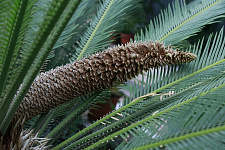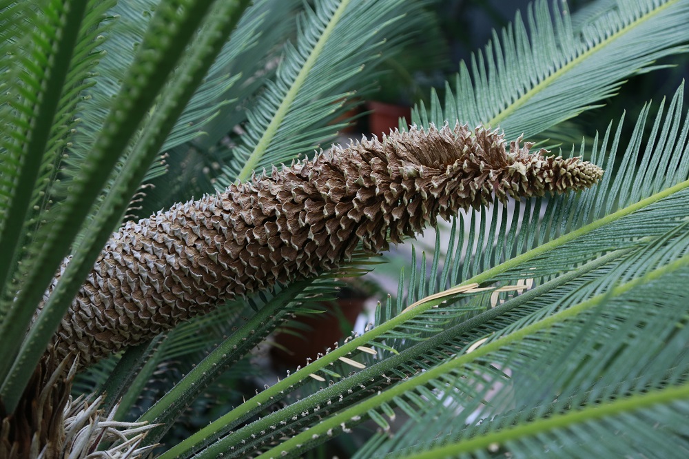 Саговники относятся к двудомным растениям: существуют мужские и женские представители. Пол растения можно определить по размеру и форме шишки. В университетском зимнем саду растёт представитель мужского растения – он «выпускает» длинную шишку, которая производит большое количество пахучей пыльцы.
