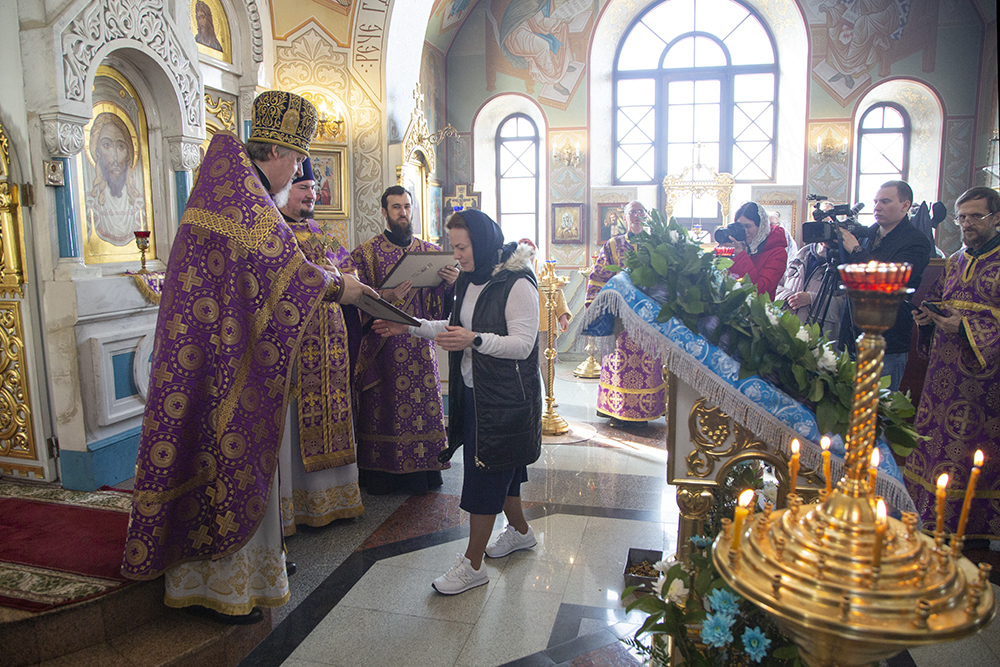 В связи с престольным праздником Олег Кобец вручил Благодарственные письма митрополита Белгородского и Старооскольского Иоанна активным прихожанам за труды во благо Белгородской митрополии РПЦ Московского Патриархата.