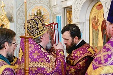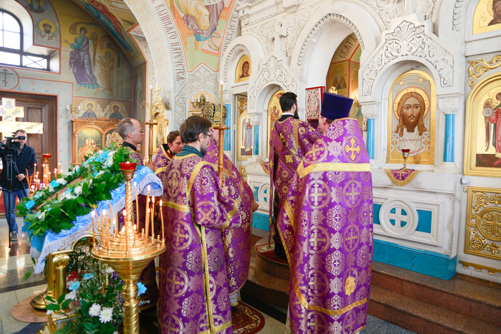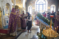 Божественную литургию отслужили настоятель Преображенского кафедрального собора Белгорода протоиерей Олег Кобец и настоятель храма Юлиан (Гоголюк).