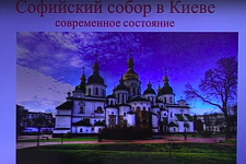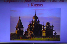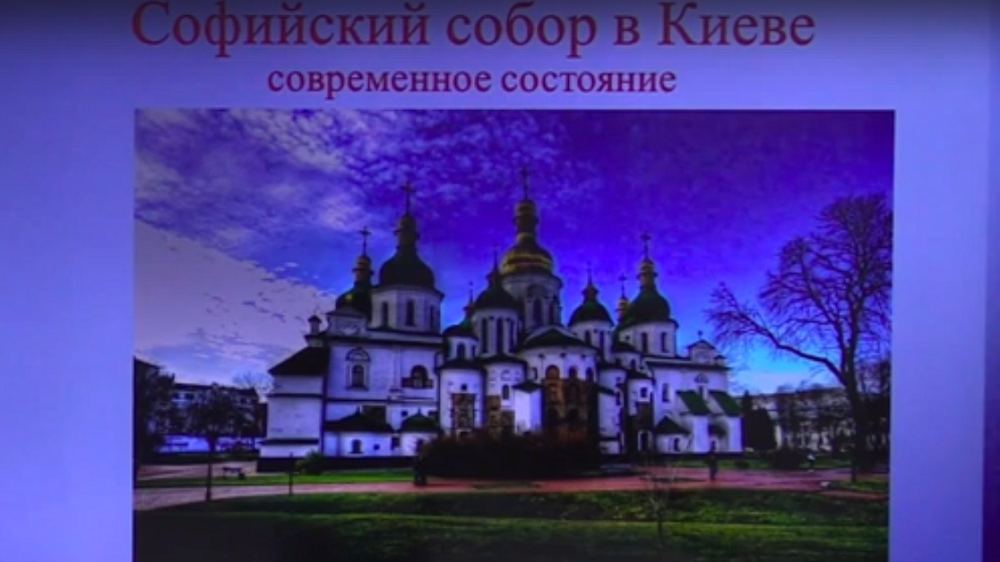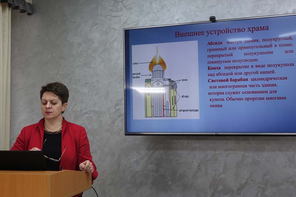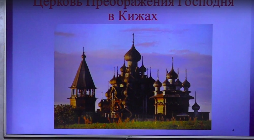 На протяжении лекции на экране сменялись здания храмов, церквей, первых созданных икон, фресок, сопровождая повествование о развитии новых направлений в искусстве.