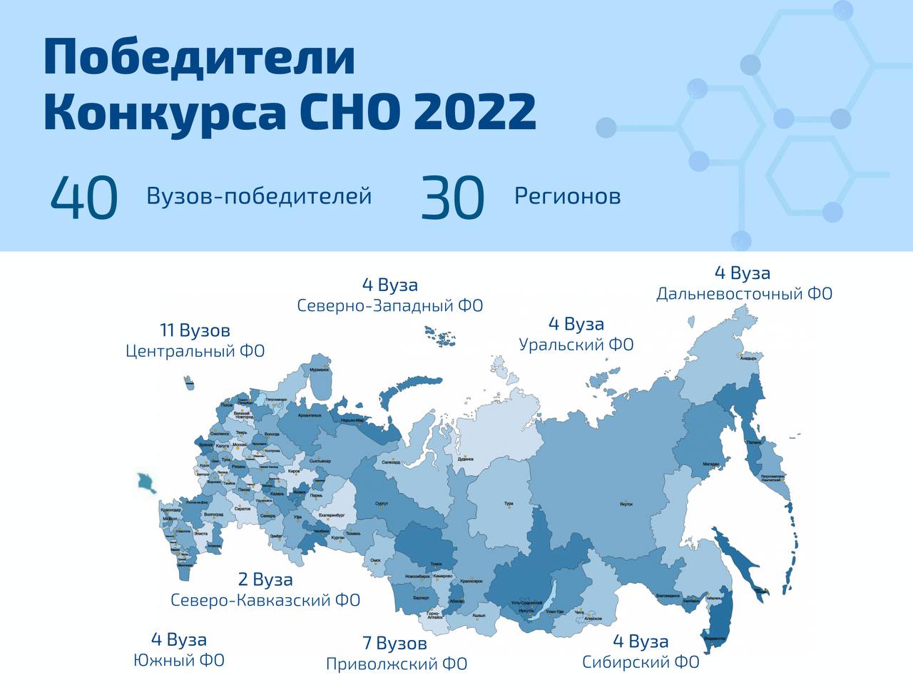 В конкурсе на получение гранта на создание и развитие Студенческих научных обществ участвовали 292 вуза из всех регионов страны, гранты получили 40 университетов.