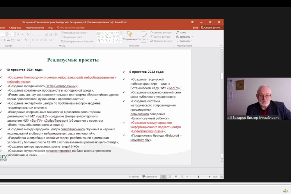 Создание консорциума и проектные инициативы обсудили на заседании совета платформы «Университет без границ» с участием ректора НИУ «БелГУ», профессора Олега Полухина.