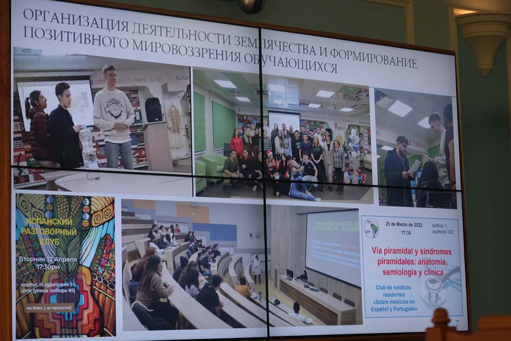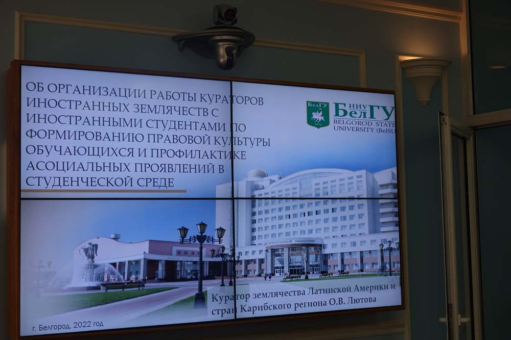 Куратор землячества стран латинской Америки Ольга Лютова рассказала об организации работы кураторов иностранных землячеств с иностранными студентами по формированию правовой культуры и профилактике асоциальных проявлений в студенческой среде. В своём выступлении она подчеркнула, что со всеми обучающимися проводится систематическая информационно-разъяснительная работа.