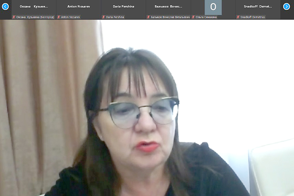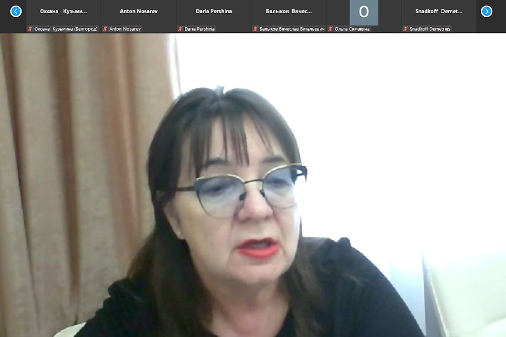 Открывая встречу, директор ИМКиМО, профессор кафедры английского языка и методики преподавания Ольга Прохорова отметила важность карьерных мероприятий для выпускников института и востребованность на рынке труда переводчиков, лингвистов, филологов, которых успешно готовит вуз. Ольга Николаевна рассказала об истории института, реализуемых направлениях подготовки и специальностях, научных направлениях и диссертационном совете.
