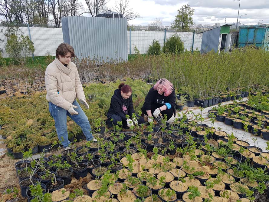 Студентки как раз работали с саженцами разных сортов сирени, размноженных в культуре in vitro и уже адаптированных к естественным условиям произрастания. Успешно перезимовавшую на открытой площадке питомника белгородскую сирень самых разных сортов волонтёры подготовили к реализации. Символично, что работы в этот день завершились перемещением саженцев сортов «Великая Победа» и «Ветка Мира».