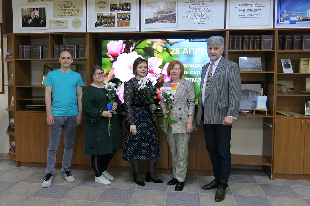 Распоряжением администрации города Белгорода в честь Всемирного дня охраны труда директор центра охраны труда и экологии департамента комплексной безопасности Белгородского госуниверситета Ольга Воеводская награждена Благодарностью администрации города Белгорода за добросовестный труд и высокий профессионализм. Приказом ректора НИУ «БелГУ», профессора Олега Полухина за добросовестный труд, ответственное исполнение обязанностей и высокий профессионализм объявлена благодарность начальнику отдела экологии Юлии Бугловой и специалисту в области охраны труда отдела охраны труда Александру Хаустову.