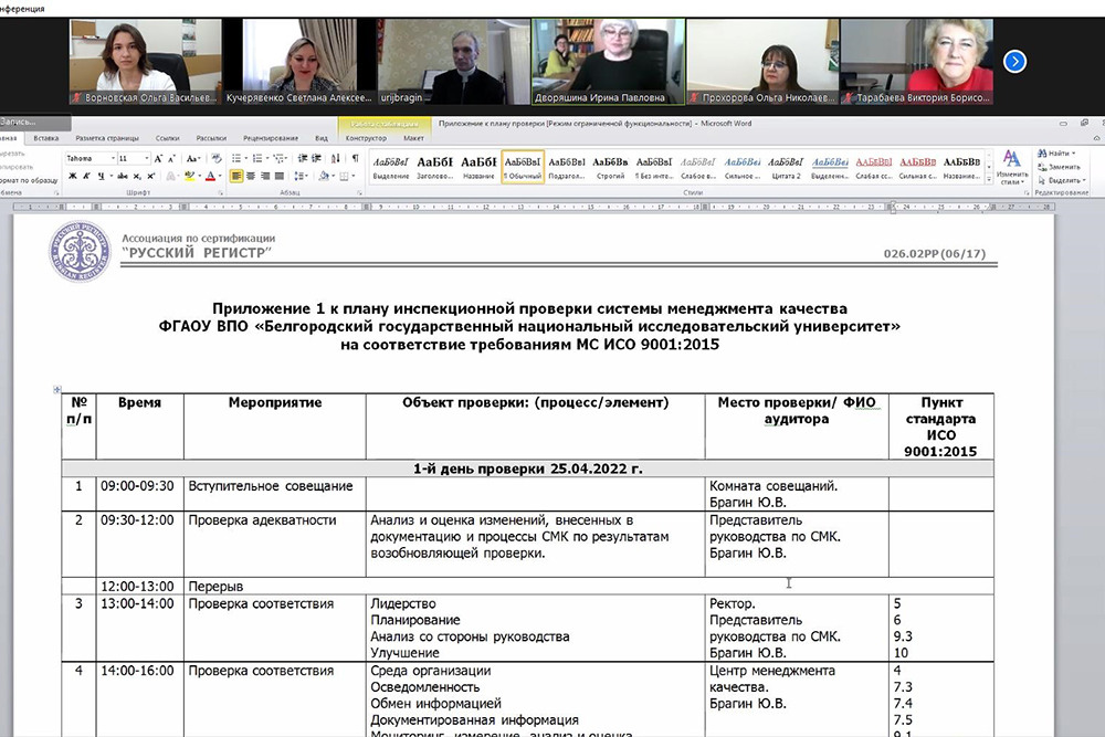 Ассоциация по сертификации «Русский Регистр» провела инспекционный аудит системы менеджмента качества (СМК) НИУ «БелГУ», цель которого – подтвердить соответствие СМК университета требованиям международного стандарта ISO 9001:2015.