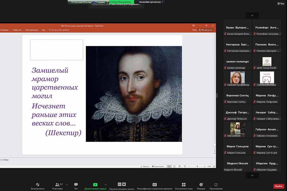 Трансляция лекции проходила в онлайн-формате. Слушателями стали 77 человек, в числе которых студенты, магистранты и аспиранты филологического направления, научно-исследовательская работа которых связана с изучением языка. Участвовали в лекции и преподаватели ИМКиМО.