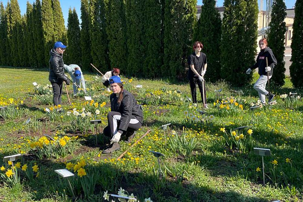 Работы в ботаническом саду продолжатся после майских праздников. Студенты из педагогического института передают эстафету обучающимся из мединститута.