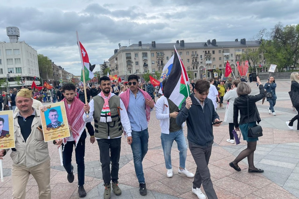 В этом году студенты-иностранцы из Иордании и Палестины также приняли участие в шествии Бессмертного полка. Этим они выразили поддержку и разделили память о Великой Победе советского народа над фашизмом.