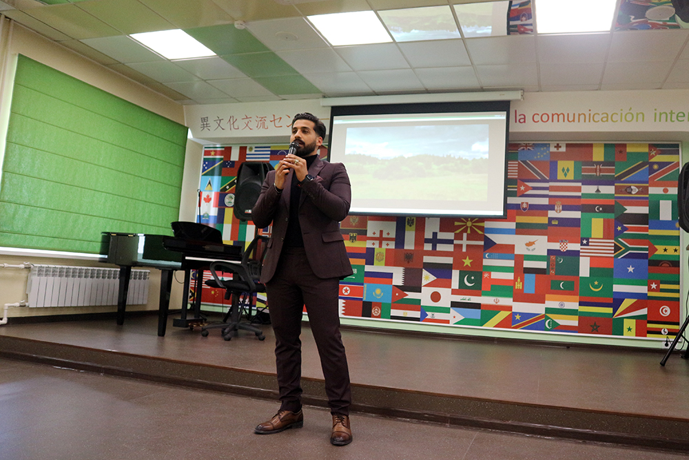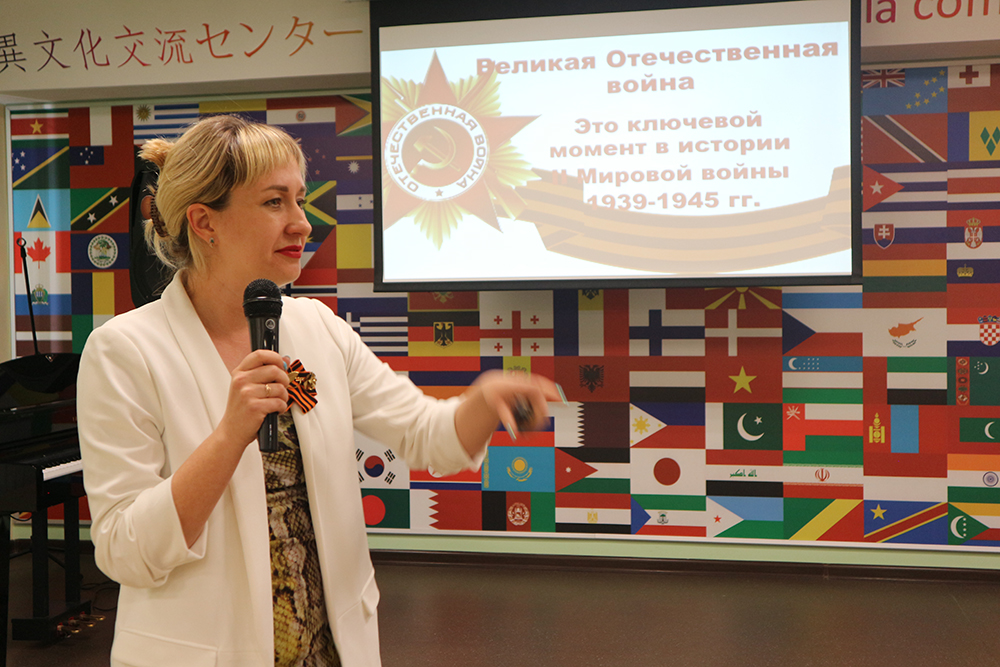 Доцент кафедры русского языка, профессионально-речевой и межкультурной коммуникации, кандидат исторических наук, куратор землячества Узбекистана и Вьетнама Анастасия Стржалковская провела для иностранных студентов информационно-просветительский час «Священная война великого народа», по завершении которого состоялась литературно-музыкальная гостиная «Строки, опаленные войной», организованная совместно с Центром гражданско-патриотического воспитания обучающихся НИУ «БелГУ».