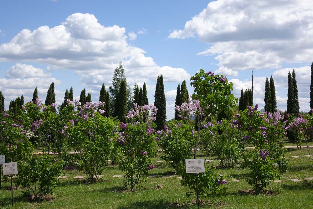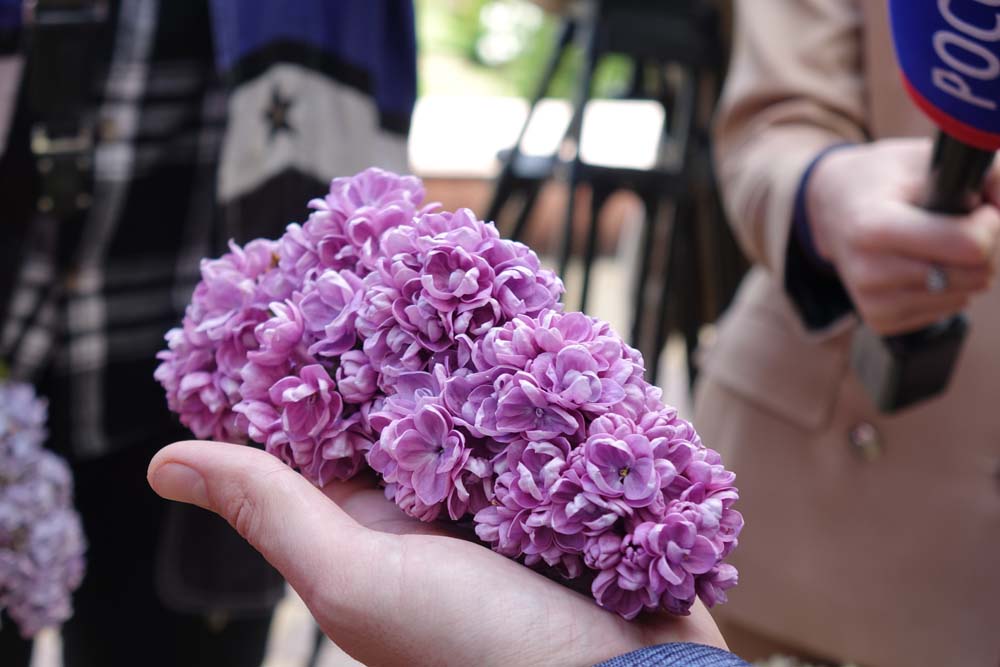На экскурсии журналистам продемонстрировали сорта отечественной сирени патриотической тематики группы селекционеров «Русская сирень», которые отличаются большими цветками и их разнообразием: «День Победы», «Оля», «Маршал Соколовский», «Маршал Конев», «Синенький скромный платочек».