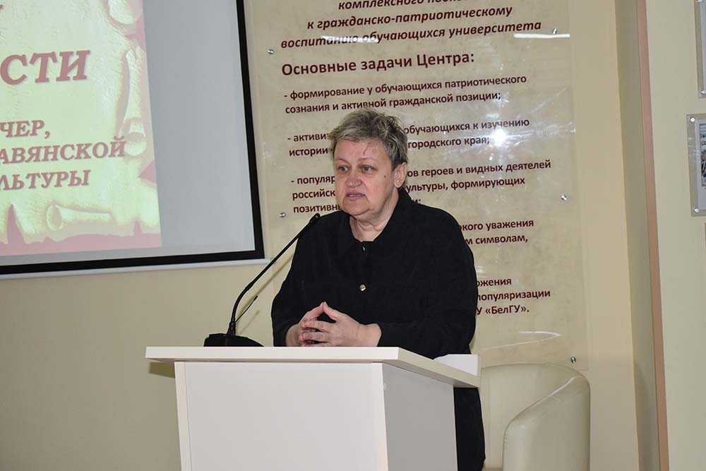 В мероприятии, организованном научной библиотекой имени Н.Н. Страхова совместно с Центром гражданско-патриотического воспитания НИУ «БелГУ», приняли участие студенты института фармации, химии и биологии, а также обучающиеся подготовительного факультета вуза. Гостями тематического вечера стали профессор кафедры русского языка и русской литературы историко-филологического факультета педагогического института Светлана Кошарная и доцент этой же кафедры Виктория Кичигина.