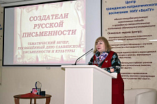 Об истории праздника Дня славянской письменности и культуры рассказала ведущая встречи – специалист по библиотечно-выставочной работе Научной библиотеки имени Н.Н. Страхова Ольга Анохина. Она особо подчеркнула то, что 2022 год объявлен Годом культурного наследия народов России, которые объединяет славянская письменность.