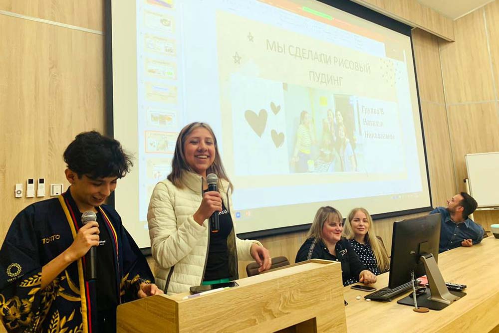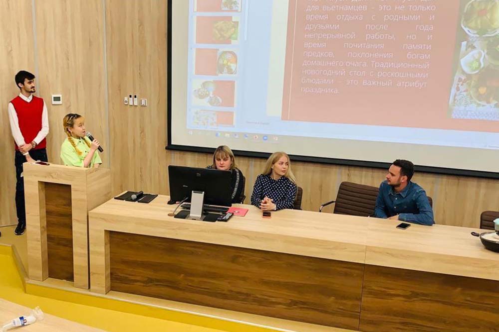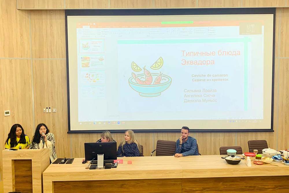 Большой интерес у участников фестиваля вызвал доклад тьютора подготовительного факультета Ивана Шеенко, который рассказал о русской кухне, подчеркнув, что одним из самых популярных блюд в России является суп. Студенты узнали об истории возникновения этого блюда, различных видах приготовления горячих и холодных супов и формах подачи.