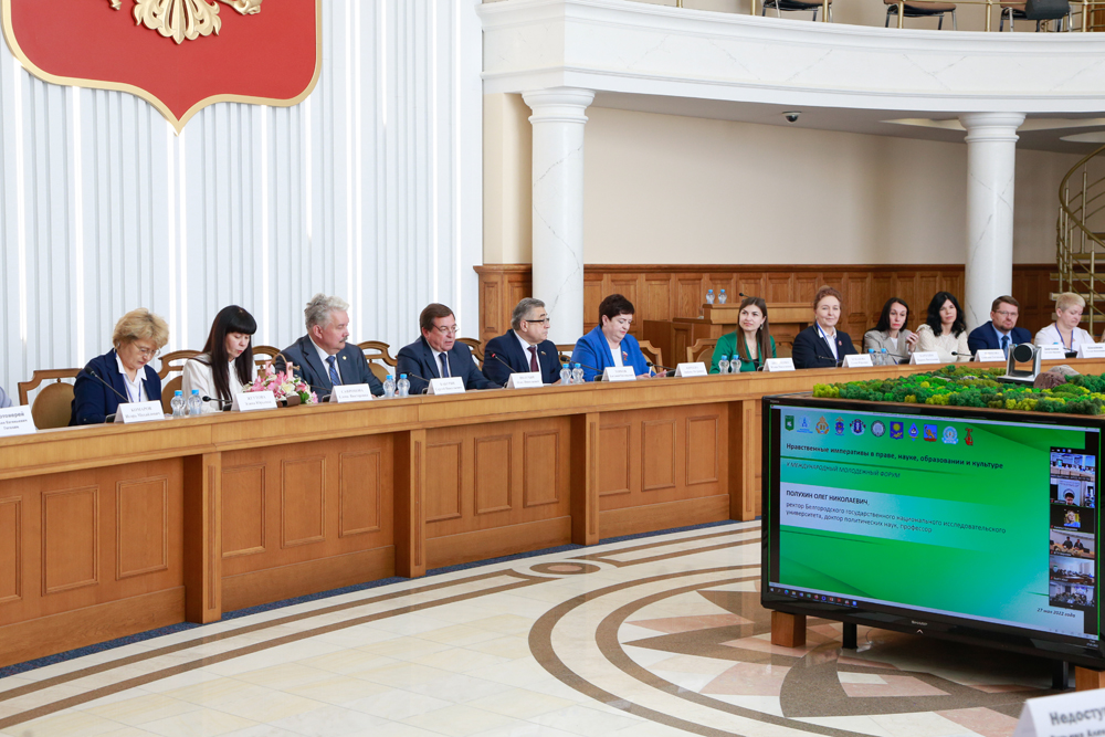 На пленарном заседании, модератором которого выступил директор юридического института НИУ «БелГУ», доктор юридических наук, профессор Евгений Тонков, были подняты темы нравственных императивов в праве и образовании, в условиях геополитической турбулентности, нравственного государства, морального выбора в праве, семейных ценностей, аспектов нравственного и духовного развития личности, роли науки и высшего образования в достижении научно-технического прорыва и др.
