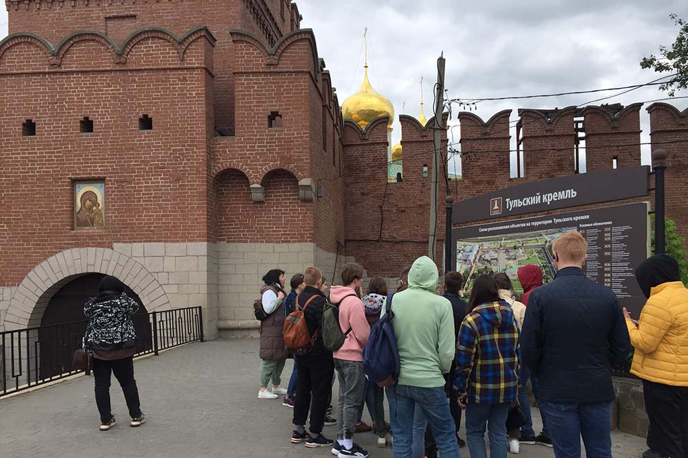 Обучающиеся побывали в Тульском кремле – памятнике архитектуры XVI века, старейшем сооружении города, связанном с деятельностью А.П. Рудакова и Н.И. Троицкого. Во время обзорной экскурсии слушатели узнали об истории создания укрепления, его устройстве, отличительных чертах. Студенты изучили внутренний вид башен, посетили открывшийся в апреле 2019 года в рамках Всероссийского форума «Кремли России и их роль в истории Российского государства» музей археологии, стилизованный под археологические раскопки, где познакомились с артефактами с раскопок при проведении реконструкции кремля в 2012-2015 гг. Посетили будущие историки и Палату древностей – первый музей Тулы, созданный Н.И. Троицким.