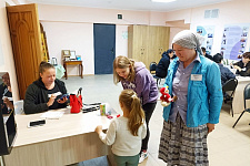 Для посетителей с детьми в штабе организовали уголок с игрушками, книгами и раскрасками, где с детьми занимаются студенты педагогического факультета. Работники отмечают, что многие дети забирают понравившиеся игрушки с собой и охотно общаются, играют со студентами.