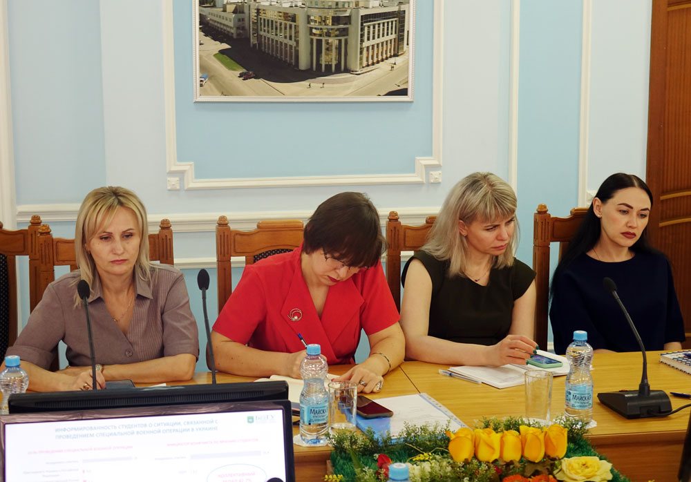 О решении задач гражданско-патриотического воспитания обучающихся рассказали директора институтов и колледжей. Директор института инженерных и цифровых технологий Константин Польщиков отметил, что хорошо зарекомендовали себя кураторские часы, молодёжь воспринимает текущую геополитическую ситуацию правильно, увеличилось количество вовлечённых в волонтёрскую работу. Директор института наук о Земле Игнат Игнатенко тоже подчеркнул, что в студенческой среде активно развивается волонтёрская деятельность, обучающиеся принимают участие в различных университетских акциях, мероприятиях городского и регионального уровней.