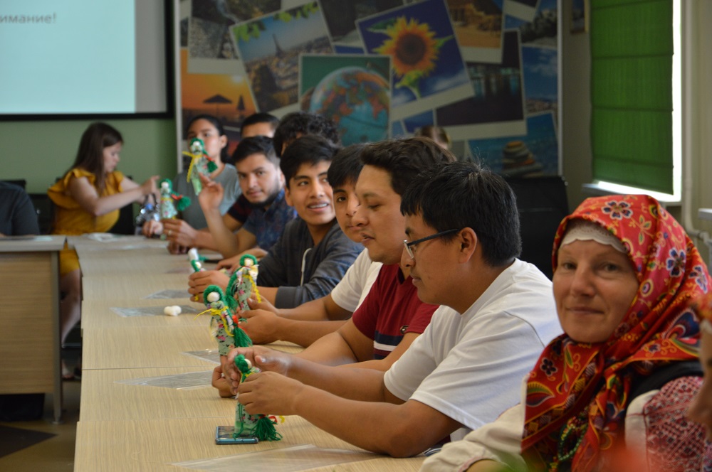 Доцент кафедры теории, педагогики и методики начального образования и изобразительного искусства Елена Иващенко провела мастер-класс по изготовлению куклы-берёзки, по которой девушки гадали на суженого. Студенты-иностранцы активно включились в процесс изготовления куклы-закрутки, узнали о значении её безликости. Молодые люди взяли с собой куклу-оберег на память.