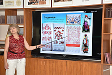 Ирина Викторовна уделила внимание в том числе символике цвета, рассказала о важности расположения символов на предметах декоративно-прикладного искусства и специфике нашего региона. На примерах лектор показала, как важно уметь правильно читать символы на изделиях. Значительное внимание было уделено вопросу правильного использования основных символов народной культуры и в современном искусстве.
