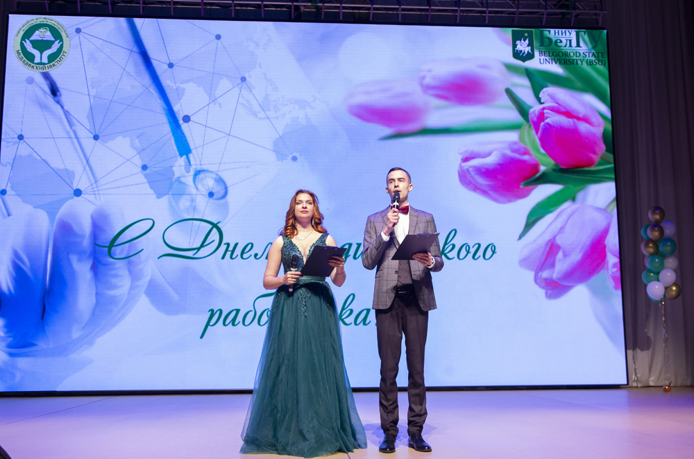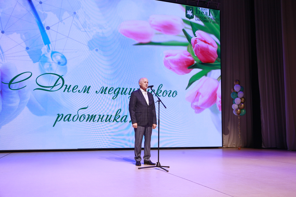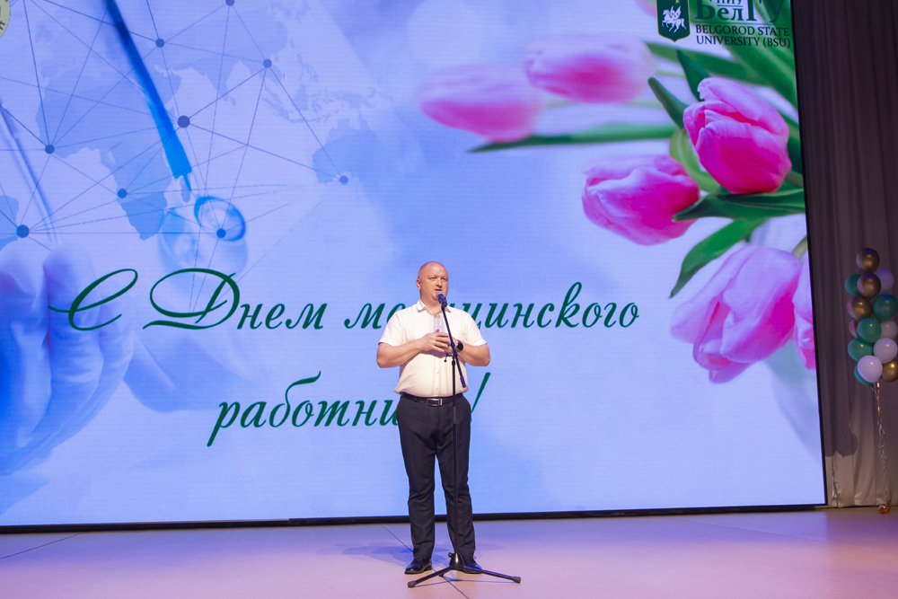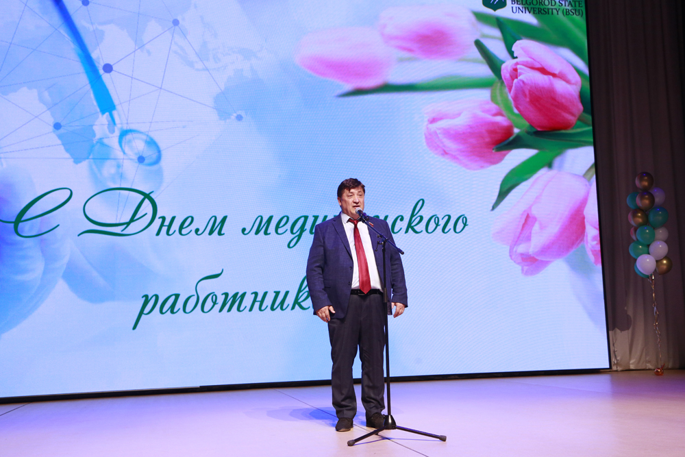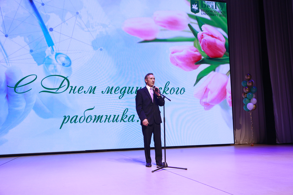 В концертном зале Молодёжного культурного центра НИУ «БелГУ» состоялось праздничное мероприятие, посвящённое Дню медицинского работника. Преподавателей и студентов медицинского института поздравили председатель Белгородской областной Думы Юрий Клепиков, министр здравоохранения региона Андрей Иконников, ректор университета Олег Полухин, директор медицинского института Николай Белоусов, настоятель Преображенского кафедрального собора Белгорода протоиерей Олег Кобец и председатель белгородской областной организации профсоюза работников здравоохранения РФ Николай Калашников. Они выразили искреннюю благодарность профессорско-преподавательскому составу вуза за подготовку высококвалифицированных специалистов, которые востребованы во всех сферах медицины. В этот день награды различного достоинства получили более тридцати человек.