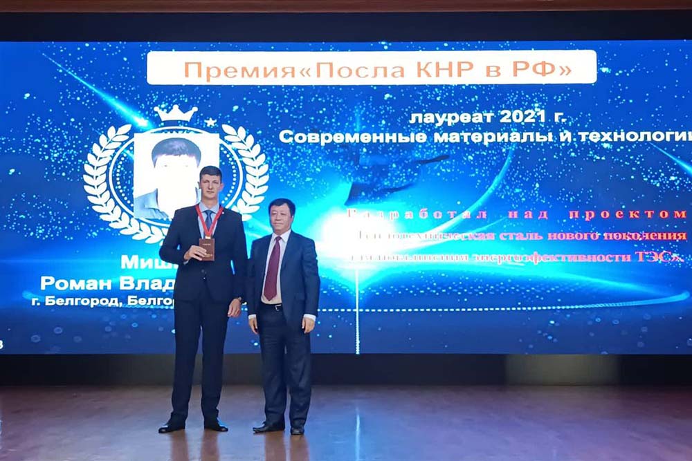 Торжественная церемония прошла в Посольстве Китайской Народной Республики в Москве. В числе награждённых – молодой учёный, кандидат технических наук Роман Мишнев. Комитет премии, учреждённой Посольством КНР в РФ совместно с Российским (международным) Союзом научных и инженерных общественных объединений, отметил разработки, которые посвящены созданию теплотехнической стали нового поколения для повышения энергоэффективности теплоэлектростанций (ТЭС).