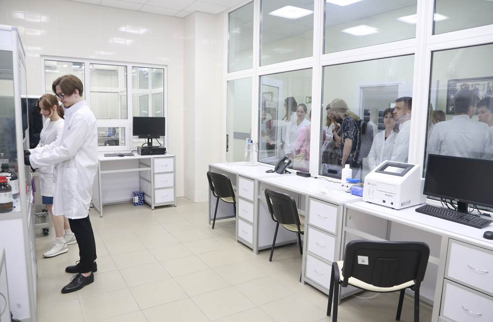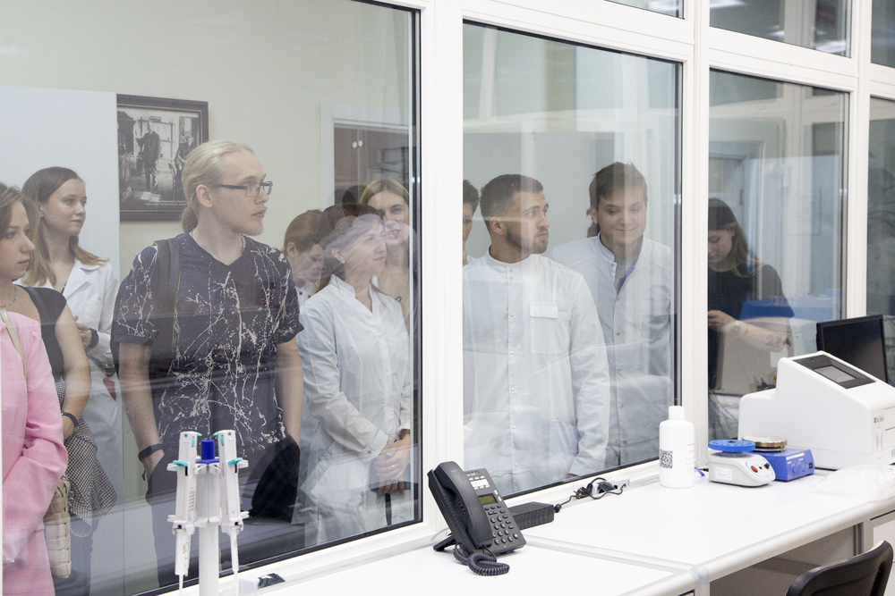 Знакомство студентов и магистрантов началось с лабораторий Биологического учебно-научного комплекса инновационных решений (БУНКИР), в этот раз молодым исследователям представилась возможность ознакомиться с лабораториями НИИ материаловедения и инновационных технологий и НИИ фармакологии живых систем.