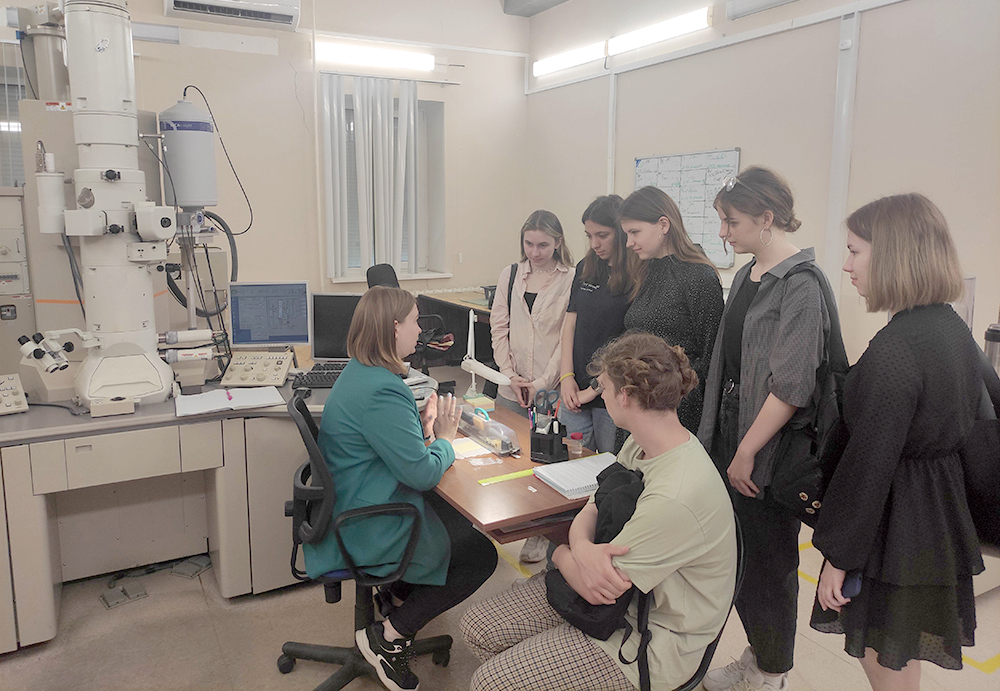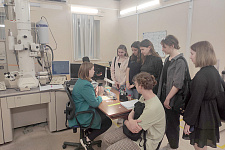 Заключительной частью программы было проведение мастер-класса «Микроскопия перспективных сплавов», где молодые исследователи смогли самостоятельно увидеть «внутренний» мир высокоэнтропийных материалов, поработав на электронном просвечивающем микроскопе под руководством научных сотрудников лаборатории.