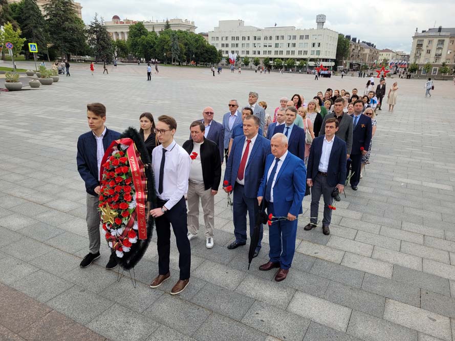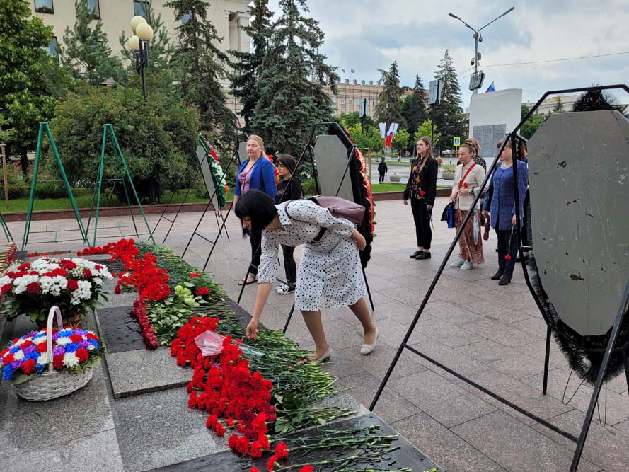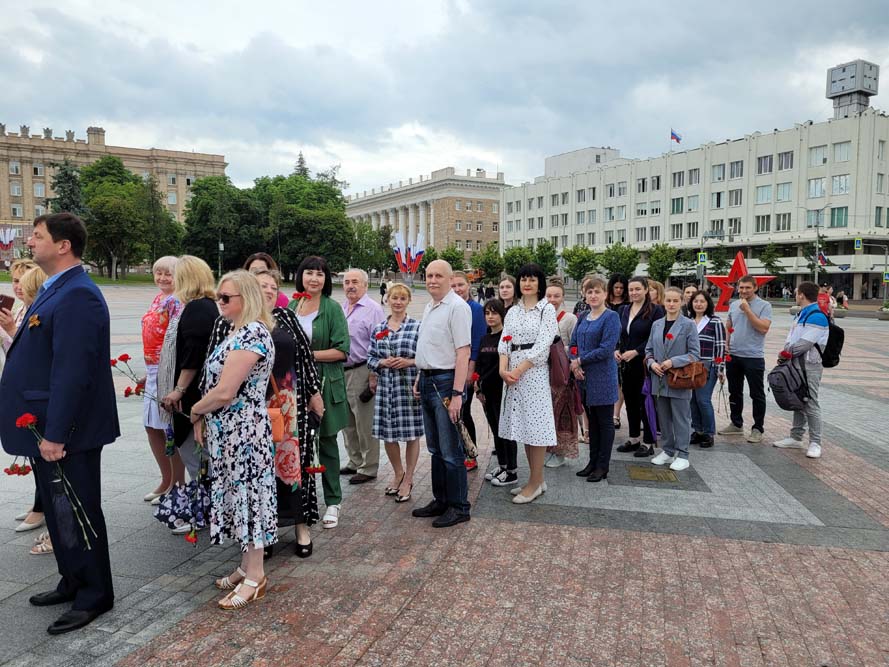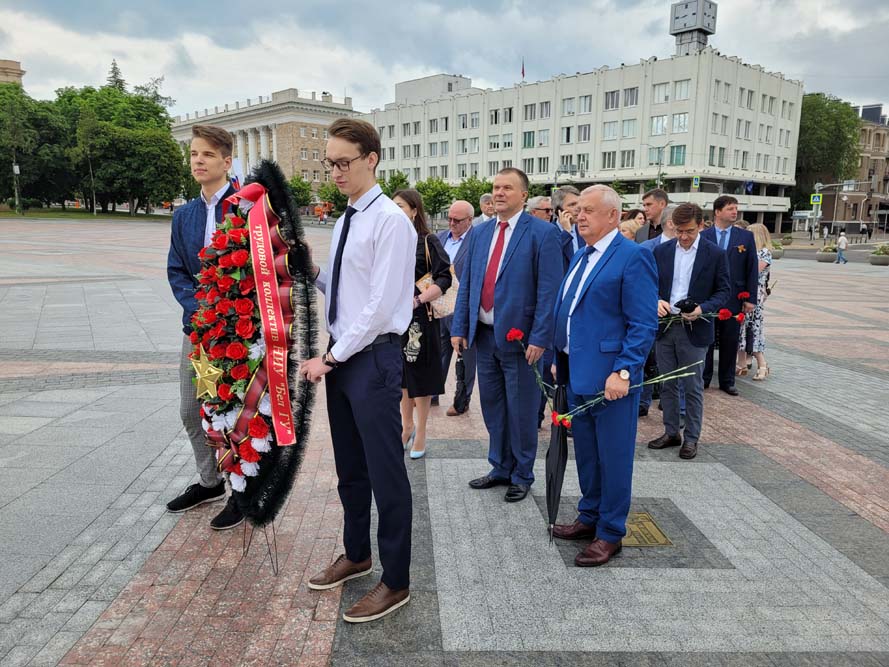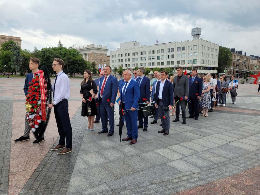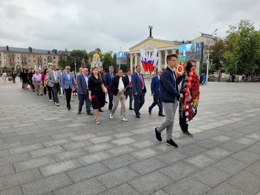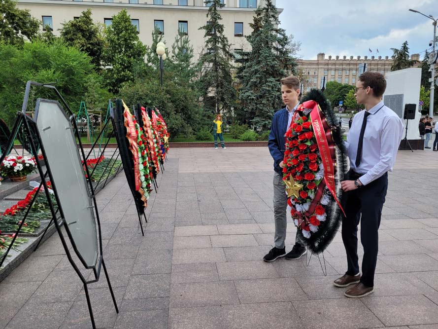 Вместе с белгородцами студенты, сотрудники и представители ректората Белгородского госуниверситета почтили минутой молчания память павших защитников Родины и возложили венок и цветы к Вечному огню у мемориала «Скорбящая мать».