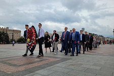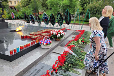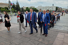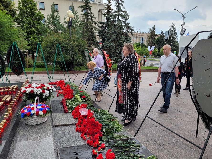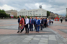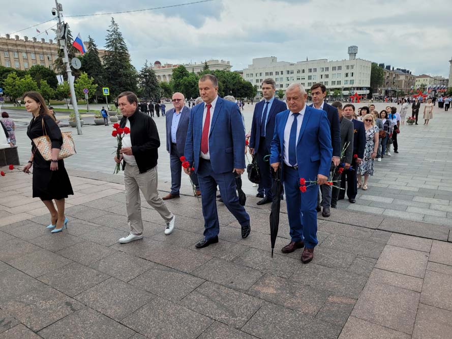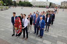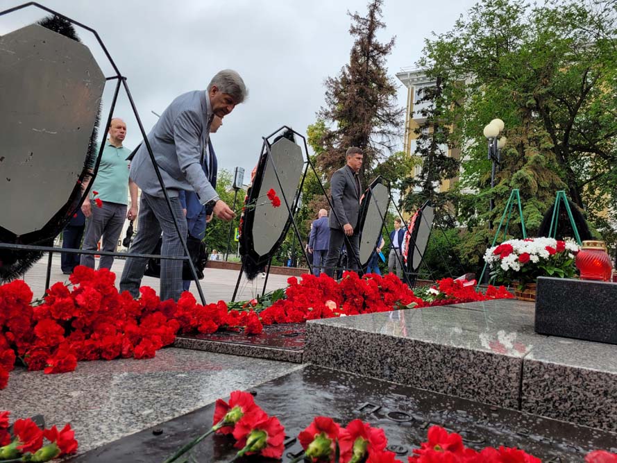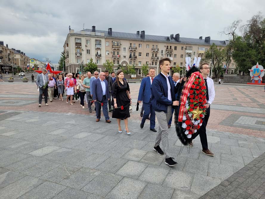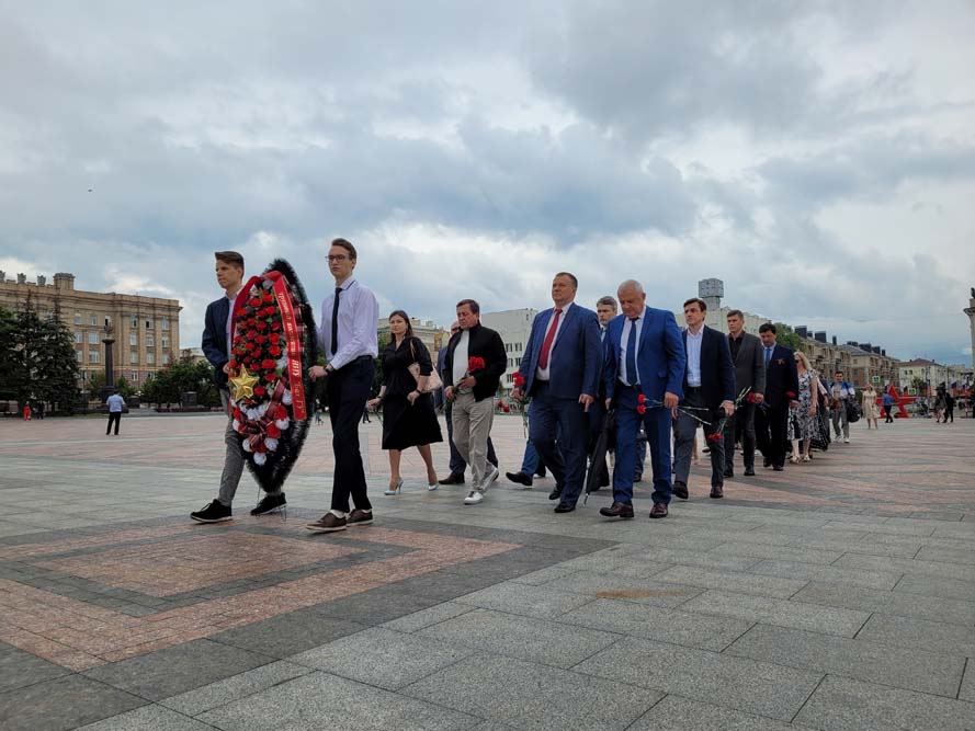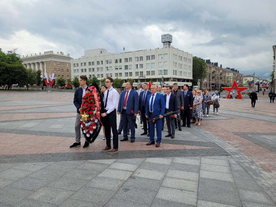 Вместе с белгородцами студенты, сотрудники и представители ректората Белгородского госуниверситета почтили минутой молчания память павших защитников Родины и возложили венок и цветы к Вечному огню у мемориала «Скорбящая мать».