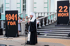 Начались мероприятия накануне. Делегация Белгородского госуниверситета во главе с проректором НИУ «БелГУ» по воспитательной работе и молодёжной политике Еленой Цукановой приняла участие в посвященном 81-й годовщине начала войны памятном вечере в Белгородской митрополии. Перед началом концерта-реквиема «1418 дней и ночей», который рассказал о пути нашего народа к Великой Победе, митрополит Иоанн совершил заупокойную литию в память об упокоении всех, кто ковал победу на полях сражений и в тылу.