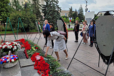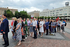 Продолжились памятные мероприятия традиционной акцией «Волна памяти» на Соборной площади Белгорода, участие в которой наряду с трудовыми коллективами предприятий, организаций и учреждений города приняла делегация НИУ «БелГУ» во главе с ректором, профессором Олегом Полухиным.