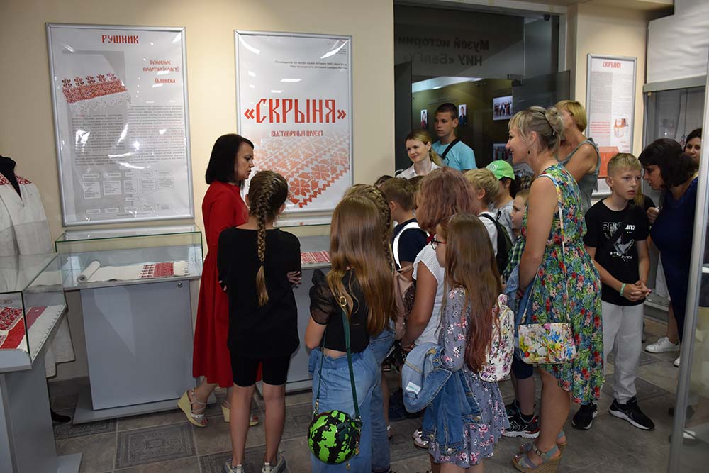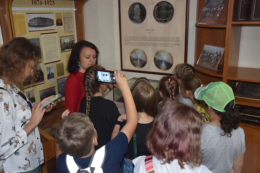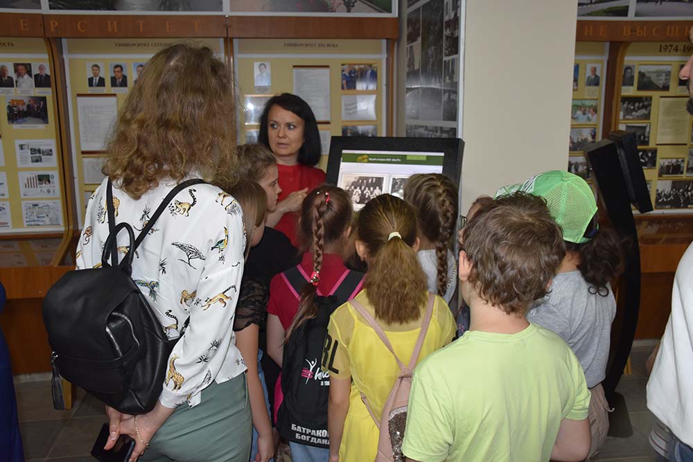 Директор музея истории университета, кандидат исторических наук Ирина Денисова ознакомила юных экскурсантов с действующей экспозицией, рассказала об истории университета и его современности, институтах, входящих в состав БелГУ, и профессиях, которые здесь можно получить. Школьники узнали о традициях вуза, его прославленных выпускниках. Также им представилась возможность ознакомиться с уникальным проектом «Скрыня», реализованным при участии сотрудников, ветеранов и студентов Белгородского госуниверситета.