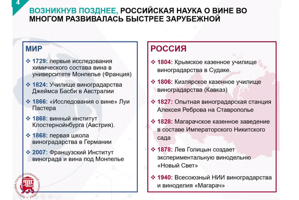 Отдельное внимание учёный уделил виноградарству и виноделию, как направлению, на примере которого можно продемонстрировать возможности генетических технологий. Это формирование и сохранение коллекций, улучшение хозяйственно-значимых признаков, оздоровление посадочного материала, формирование благоприятного микробиома терруара и компонентный анализ продукции.