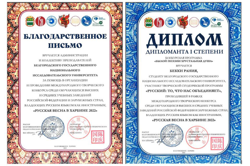 Иностранные студенты НИУ «БелГУ» стали победителями конкурса «Русская весна в Харбине 2022»