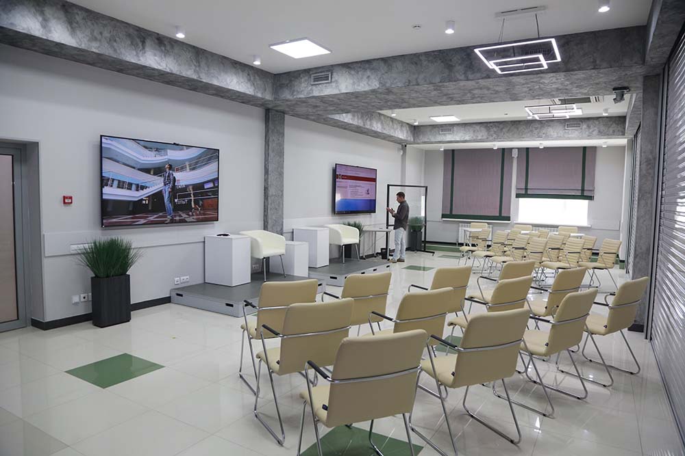 «Проектория» разделена на семь залов, часть из которых оборудована для проведения лекций и практических занятий. Другая часть ориентирована на удобное деловое общение, отдых и обсуждение идей. Главная особенность всего пространства – его гибкость и возможность трансформироваться под конкретную задачу. Некоторые залы можно объединять между собой, компоновать мебель. Каждый зал укомплектован новейшим оборудованием, позволяющим проводить конференции в формате ВКС, подключаться к сети Wi-Fi.