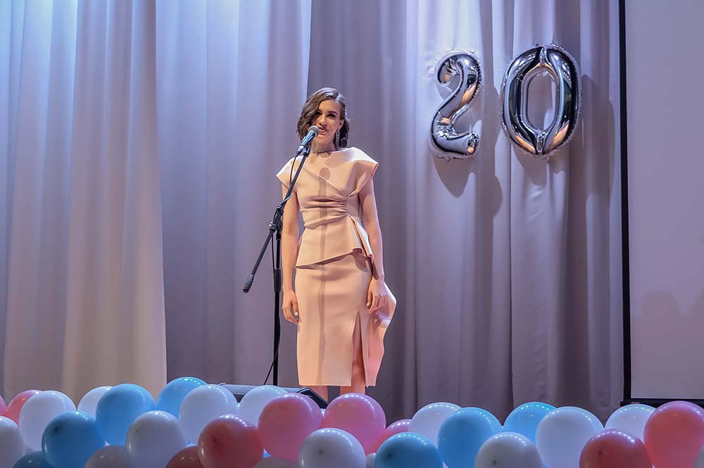 С ответным словом от выпускников выступила активная участница культурно-творческой и общественной жизни факультета и университета Виктория Ефимова. Она выразила благодарность преподавателям-наставникам, также обратилась со словами благодарности к родителям и сокурсникам.